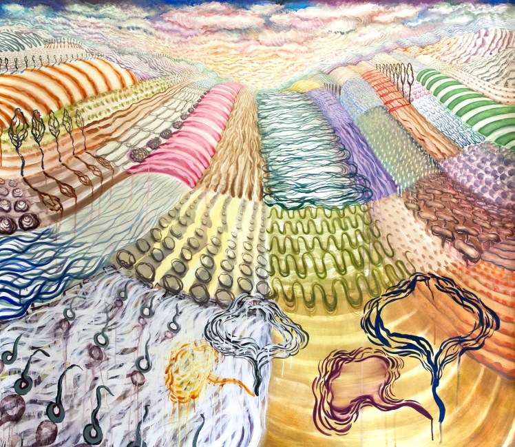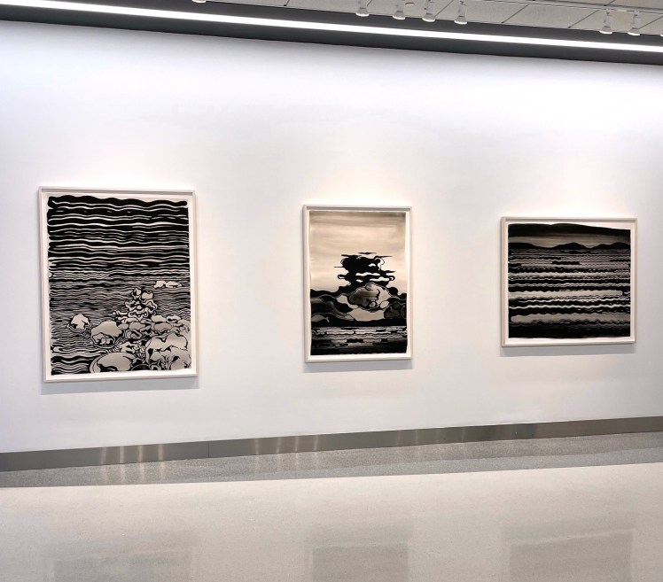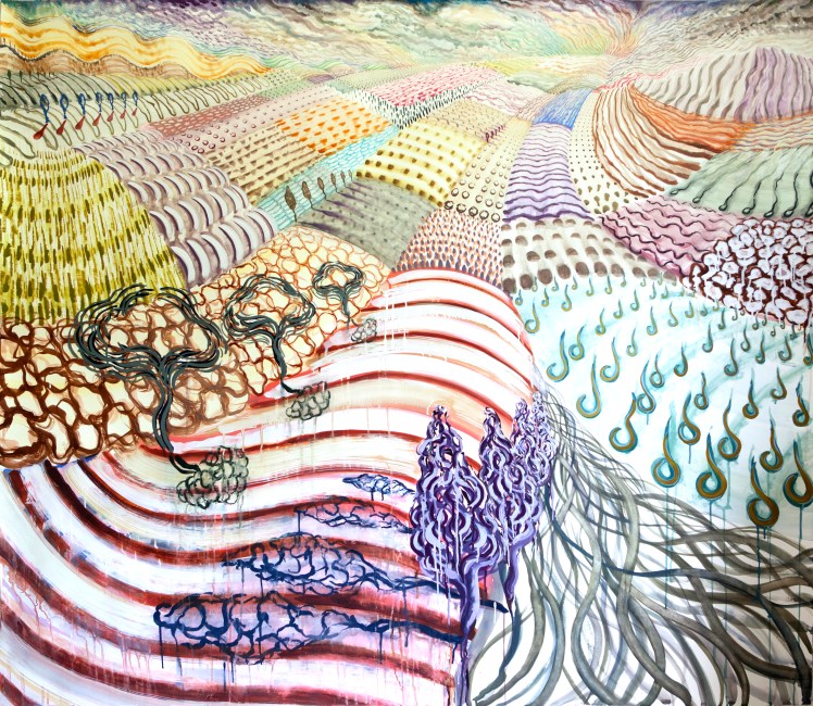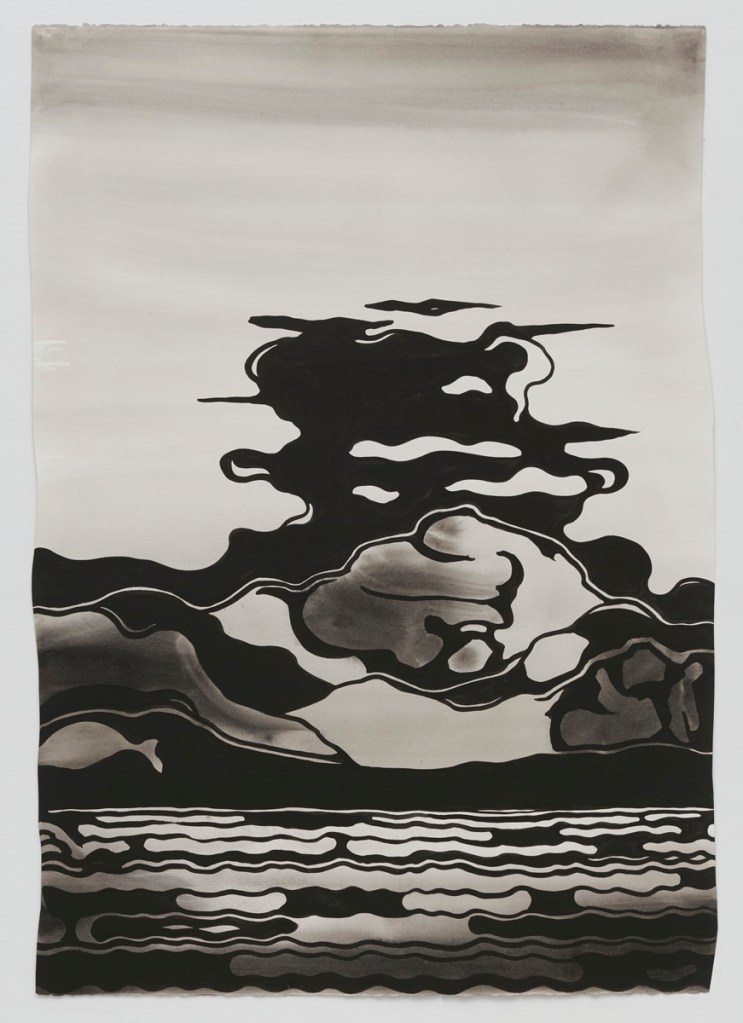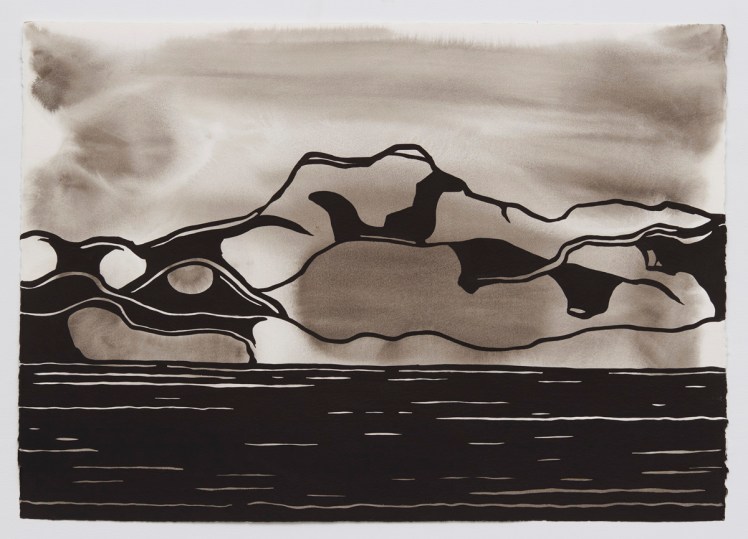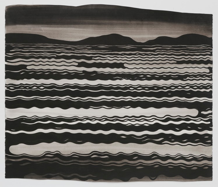 In this exhibition, works by artists Eric Wolf and Lily Prince are rooted in landscapes they inhabit and closely observe. Each uses a visual language of pattern and distinct mark-making to describe the features of hills and valleys, water and sky, cultivated fields and wild expanses. Returning each year to Maine, Hudson Valley artist Eric Wolf paints particular lakes and mountains en plein air, or directly within those landscapes. Velvet-black ink crisply defines the movement of waves and contours of rock, laid over soft washes of grey that hint at weather conditions or time of day. Lily Prince makes drawings and paintings of the places to which she travels, and like Eric Wolf, works from life as well as within her studio. While observing turbulence in the world, Prince calls attention to the rhythmic patterns and dynamic gestures that distinguish landscapes from the vast spaces of American national parks to the rolling hills of the Italian countryside.