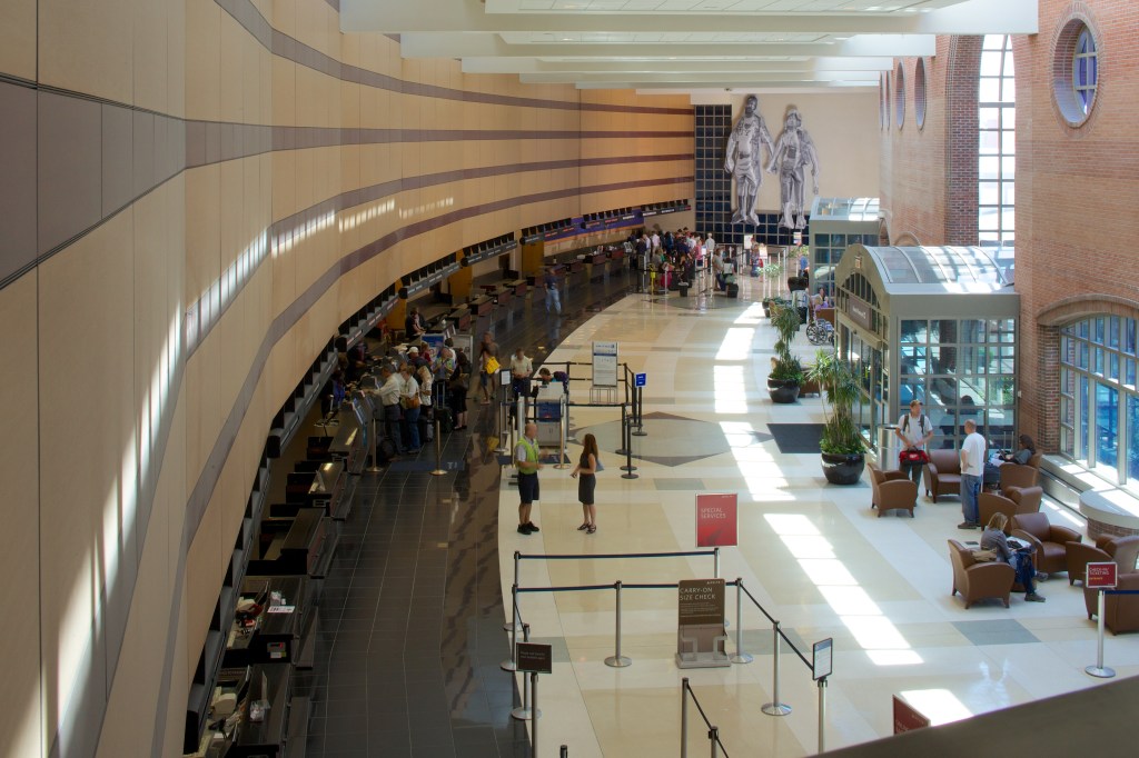 In Grant Wood’s iconic painting, American Gothic, a man and a woman stand in front of a typical Midwestern farmhouse that features a European gothic-style window. These incongruities are central to the work, and viewers ever since have seen something of themselves – something uniquely American – in the austere, hard-working pair. The figures in Benjamin Entner’s American Gothic are also easy to identify with. These travelers wait, suspended in their anticipation of the happy diversions that lie at the end of their journey.