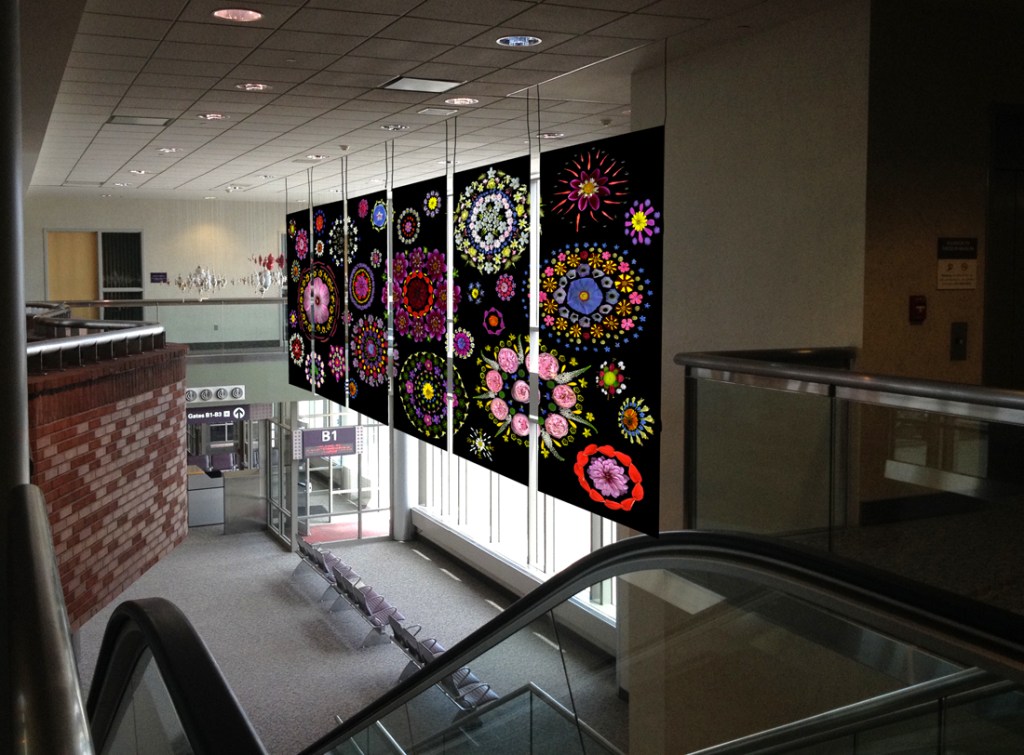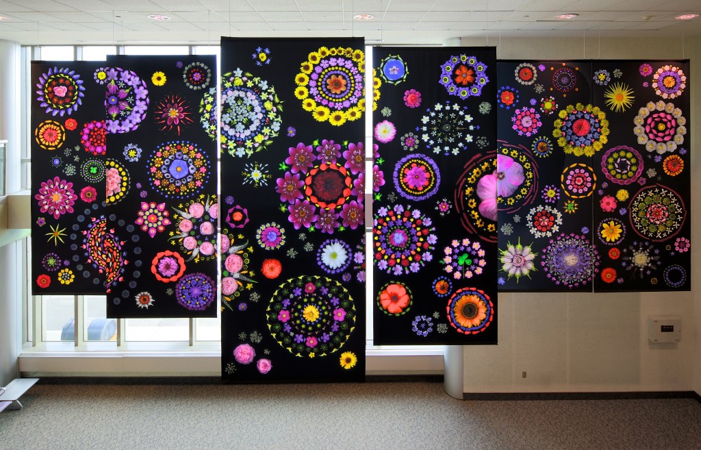 In Cosmos, the vibrant, delicate segments of flowers common to our Hudson Valley region are carefully arranged to resemble the bursting, spinning celestial bodies that inhabit the far reaches of our sight. Drawing upon the bounty of her own garden, the artist infuses this busy, built environment with contemplation of the world around and far beyond. To see more of Portia Munson’s artwork, including two MTA Arts for Transit Subway commissions, at Fort Hamilton Parkway and Bryant Park Stations in NYC, please visit www.portiamunson.com. The artist is represented by P.P.O.W. Gallery, New York