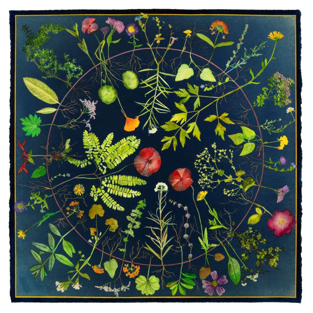 In the spring of 2021, artist Julia Whitney Barnes began to research the herb garden at the Shaker Heritage Society, in Albany, NY, located a brief walk from Albany International Airport. The Society is located on the site of the Shakers’ first settlement in the United States, known as the Watervliet Shaker community. Its herb garden pays homage to the significance of the Shakers’ herb cultivation, and seed and medicinal herb industries. Over the course of a year, Whitney Barnes collected a specimen from each of the 150 herbs grown in the garden, which she pressed and documented.