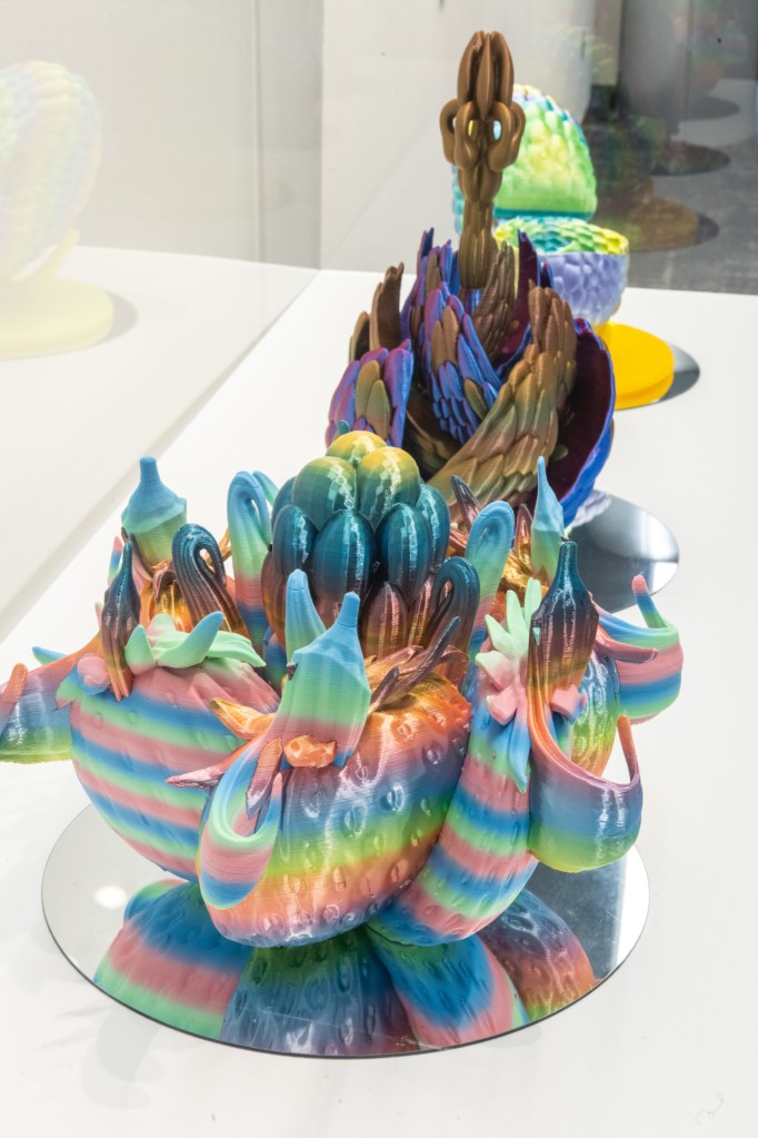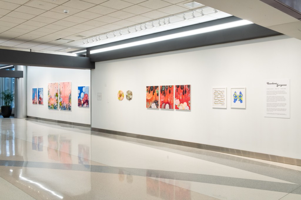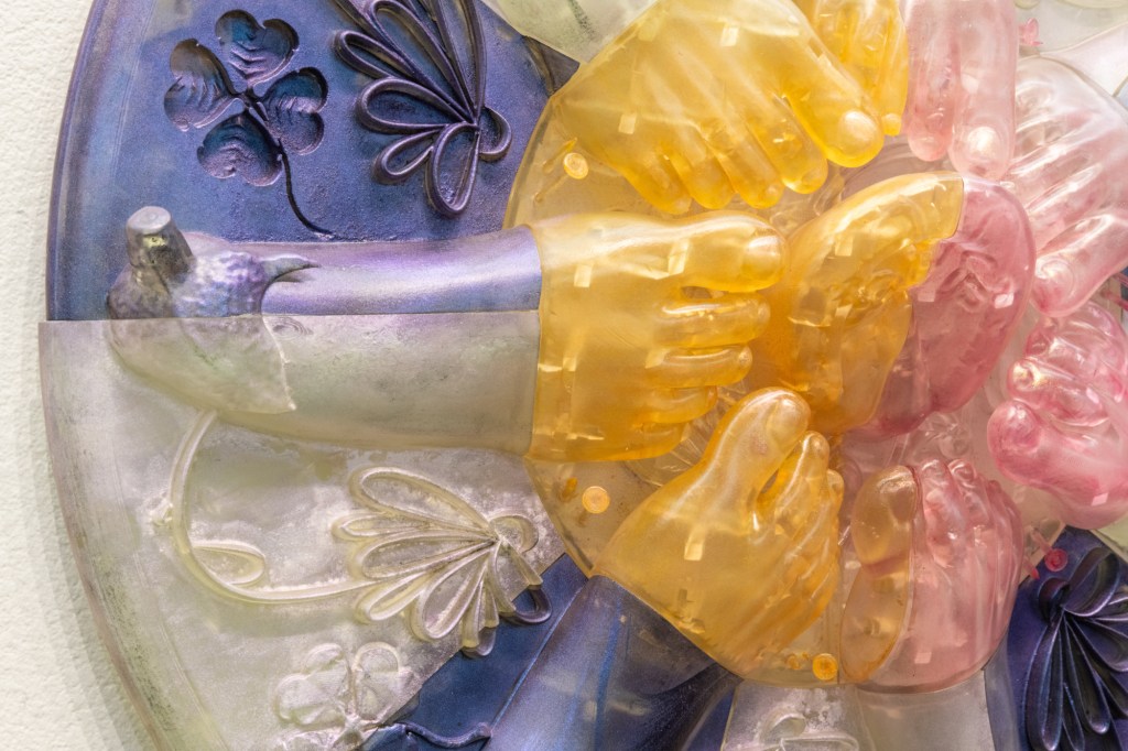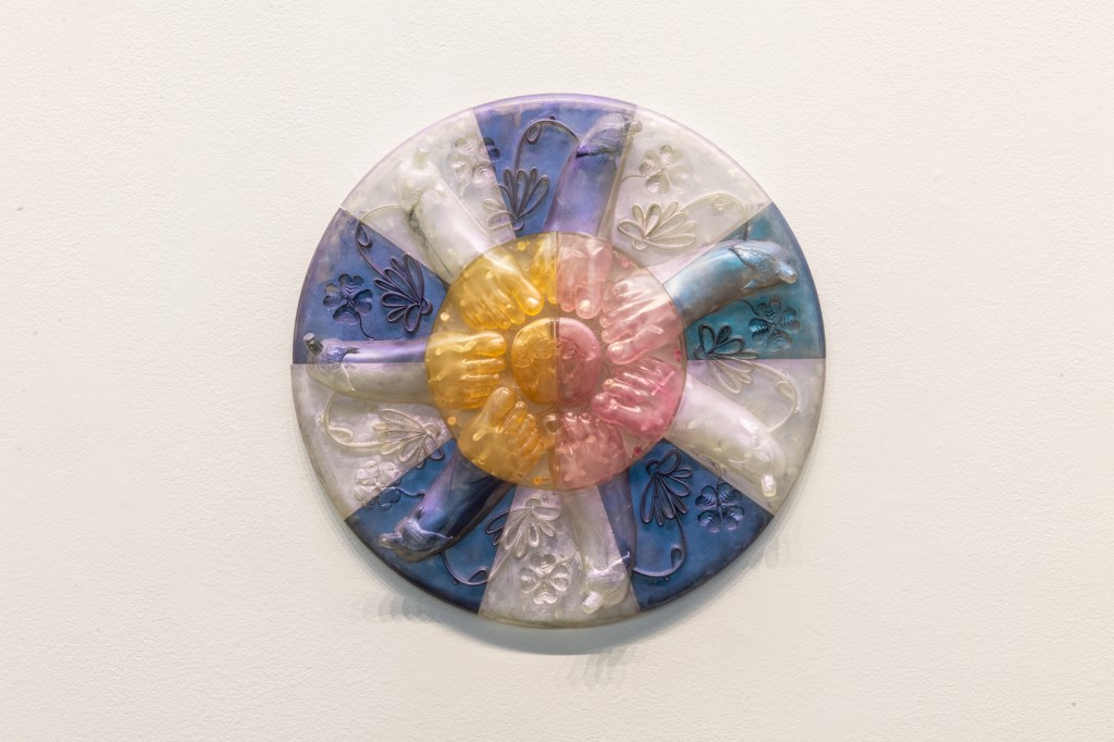 This exhibition takes its title after one of Amelia Toelke’s paintings, The Best, in which a series of superlatives are linked together as one long, exuberant charm necklace. Based on the familiar script jewelry that declares fortunes and aspirations, Toelke’s invented chain bestows every empowering quality upon the wearer. There is a jeweler’s sensibility to the meticulousness of all three artists’ work; to their deftness with pattern and detail, sumptuous color palettes, and consideration of the boundary between ornament and nature. Gracelee Lawrence’s sculptures are seductively smooth, opalescent, and symmetrical. On closer inspection, these compositions reveal a hybrid union of animal, human and botanical parts that are beautifully, and inextricably connected. Likewise, Sarah Lutz’ paintings allude to places or features of the world that seem familiar, but are so transformed as to occupy their own reality. Clusters drift and pile, translucent and aglow, around formations and forces that echo what we might imagine at the bottom of the sea, or deep inside our own cellular systems. While on their surface, the works in this exhibit are visibly gorgeous, the artists are also occupied with questions about the transformative power of the body – and our human identity – through patterns of nature and inventions of adornment.