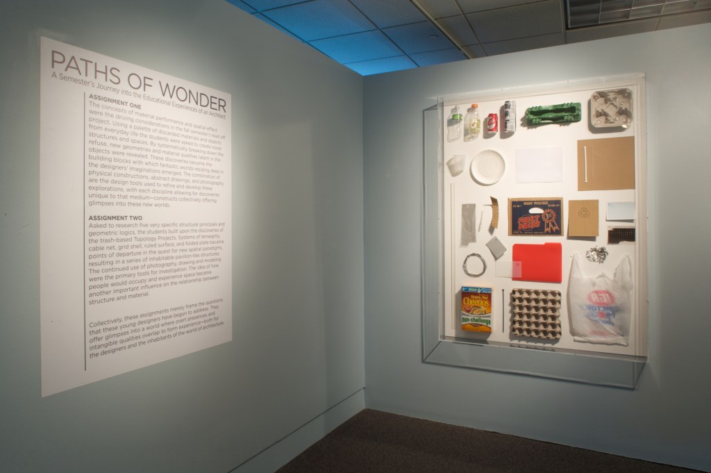 As an introductory exercise, Rensselaer students entering their first year of architectural education are challenged to imagine the new spatial and structural possibilities latent in found, discarded or recycled material. The exhibited work takes up issues of the poetic, the novel, the spectacular and above all the architectural possibilities that can arise from a zealous exploration of not only what the material is, but more importantly what it can become.