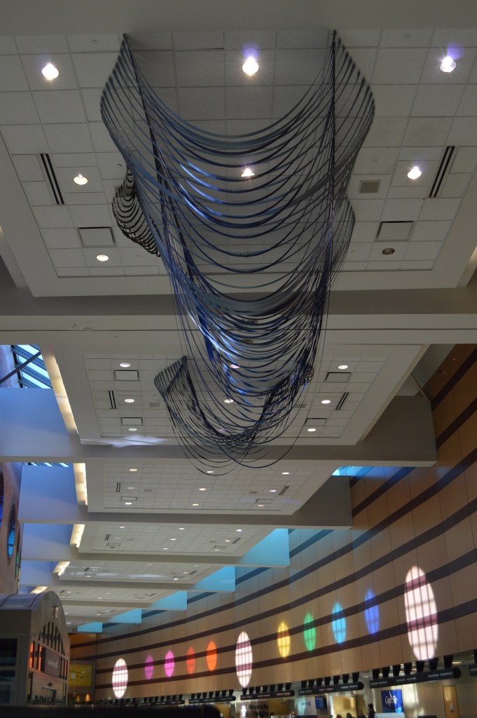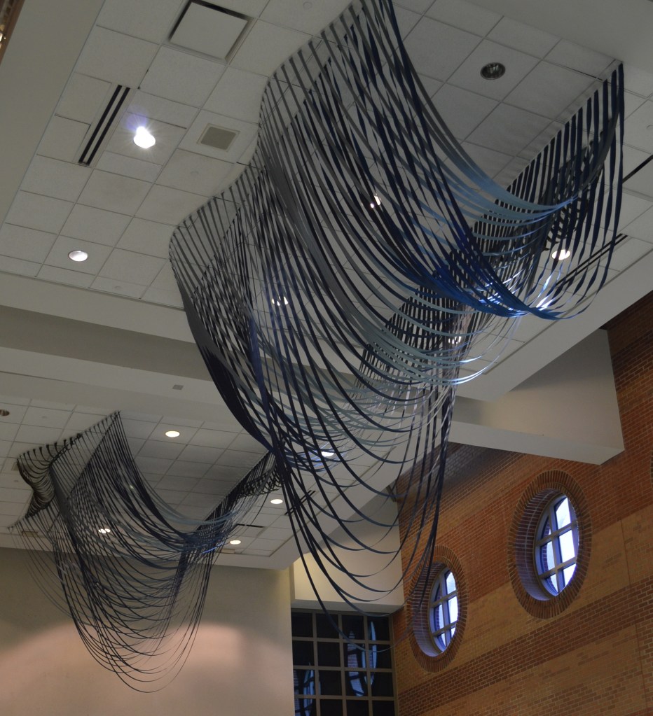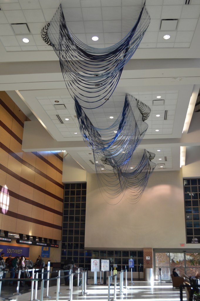 It is remarkable how our perception of the earth can change when we view it from high above. While we inhabit the land and are by nature familiar with its terrain, it is when we are lifted into the air along the great arc of a jet’s pathway that we can peer through a small glass porthole and truly see the ground below. In this work, The Sky Starts at the Ground, the artist considers the kinship between the curve of an aircraft’s passage between destination points, and the rise and fall of the land itself as it appears to the airborne traveler.